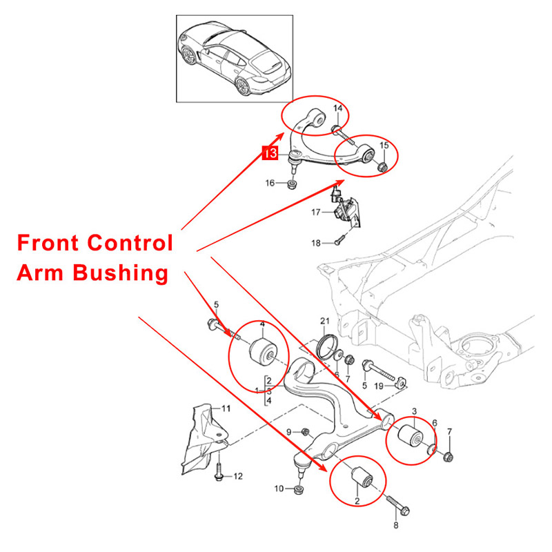 Porsche Panamera 2014–2016 Front Upper and Lower Control Arm Bushing KitPorsche Panamera 2014–2016 Front Upper and Lower Control Arm Bushing Kit